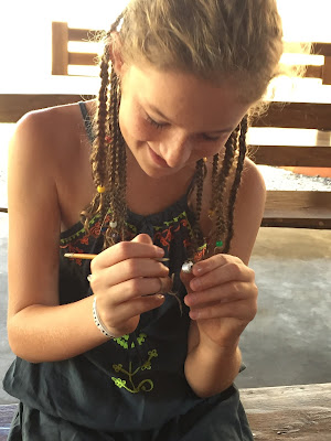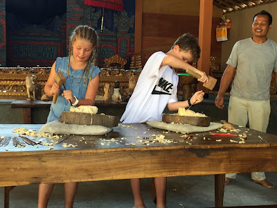 Jonah and Bella did wood carving and made a lizard and a turtle. They worked really hard and did so well. They seemed to go into a meditative state concentrating so hard and enjoying the process. It also cost 300,00 RP and was 3 hours.