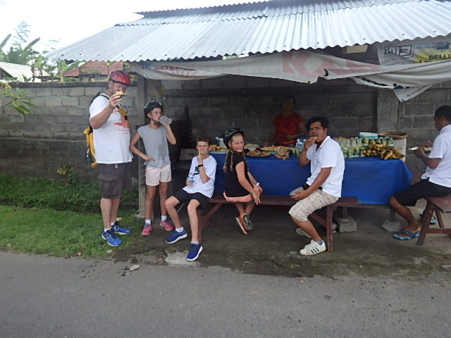 The ride it self was fantastic, such a fun and unique way to see the true Bali outside of the tourist hubs. We whizzed through small towns where local children waved and tried to race us on foot. We went past the beautiful rice fields and stopped to walk through one and see how the rice is picked. You can then see the rice drying on the side of the roads in the villages. We went down tiny out of the way paths through green jungle areas even stopping at a tiny road side food stall with amazing samosas and the best Pisang Goreng (fried bananas). We stopped at a family compound to see how people live, the Balinese still really struggle financially, it is eye opening.