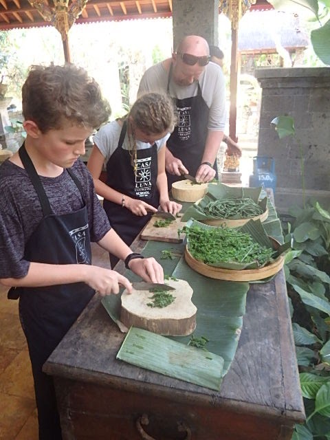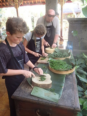 Casa Luna is owned and run by Melbourne born Janet De Neefe and her husband Ketut. They also run Honeymoon Guesthouse that I normally stay out but it was booked out with a big yoga group this time. This is the 3rd time I have done a class and each time I have learnt something new. I LOVE Balinese food, it has a very unique flavour and worth discovering. It is hands on and you get to enjoy a big scrumptious feast at the end. My children really enjoyed it and learning how to make pastes by hand instead of throwing into the thermomix. If you have the time and the interest try and do the Market Tour as well. We didn't this time but have in the past and it is a great experience.